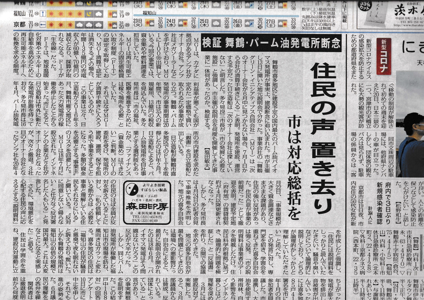 新聞記者さんにお礼をしよう! 〜舞鶴パーム油発電撤回のニュースがたくさん配信〜