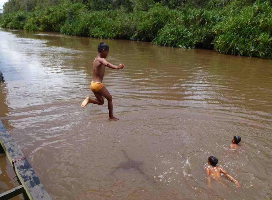 村の未来を担うのは村人自身、そして子どもたちです。FNPFはタンジュンハラパン村にある小学校の先生との協力で、子供たちへの 環境教育プログラムを放課後に行ってきました。村からボートで森へ行き、そこで育てている植物や薬草を学んだり、苗を植えたり、 時には自然の中でネイチャーゲームをして楽しみます。村の子どもたちはみな素直に自然とふれあい、村の周りのオランウータンが 住む森がずっと残って欲しいといいます。